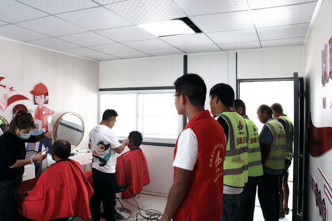 此外,公司以“保障一線(xiàn)施工人員的權益”為落腳點(diǎn),花式“送福利”,讓工人們體會(huì )到了家一般的溫暖?!拔覅⒓拥幕顒?dòng)多著(zhù)呢!中秋節送月餅、愛(ài)心剪發(fā)、夏日送清涼等,在其他地方可沒(méi)這個(gè)待遇?!闭勂鸸ぷ髦?,施工班組組長(cháng)胡恒悅忍不住夸贊道。為營(yíng)造新時(shí)代文明實(shí)踐好氛圍,使農民工兄弟們感受到關(guān)愛(ài),交航公司全力做好后勤保障,力爭為一線(xiàn)員工提供更加舒適的工作環(huán)境。
