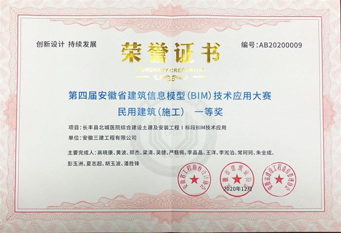 近期,安徽三建公司喜獲三項BIM大獎!《省重點(diǎn)實(shí)驗室-抗震檢測實(shí)驗室BIM綜合深化應用》獲第五屆中國建設工程BIM大賽綜合三類(lèi)成果,長(cháng)豐縣北城醫院項目、合肥市青少年綜合實(shí)踐基地新建工程分獲2020年度安徽省第四屆建筑信息模型(BIM)技術(shù)應用大賽一等獎和三等獎。
