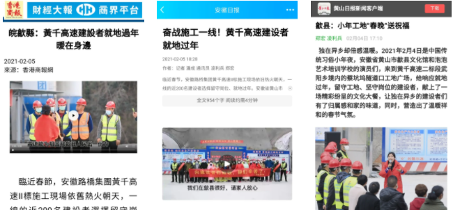 《安徽日報》、《香港商報》:黃千高速建設者就地過(guò)年暖在身邊