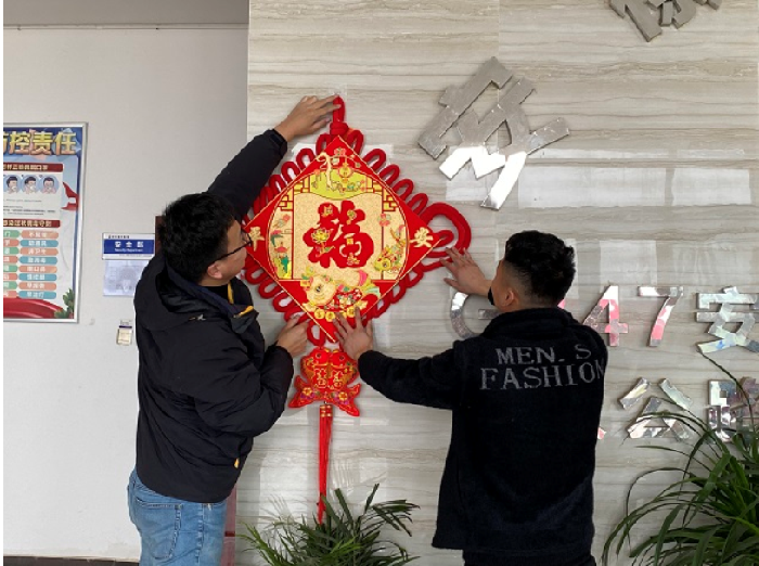 為了將年味注入進(jìn)每一個(gè)不能回家的員工心中,讓新年更有煙火氣、儀式感,項目部掛中國結、貼春聯(lián)、送福字,為做好疫情防控工作就地過(guò)年的一線(xiàn)建設者增添年味。員工們聚在一起喜迎新年,互相祝福,年味濃濃,感受著(zhù)新春的溫暖,營(yíng)造了春節喜慶祥和的節日氛圍。