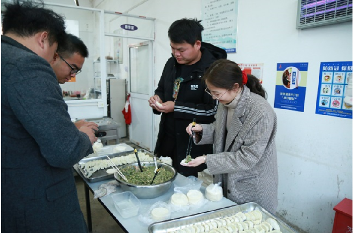 蕪黃03標項目春節前,職工食堂組織了包餃子活動(dòng),大家圍在餐桌旁有說(shuō)有笑地開(kāi)始準備,有人和面、有人搟皮兒、有人包餃子,分工明確又配合默契。大家在歡樂(lè )、溫馨的氣氛中相互幫助,密切配合,個(gè)個(gè)大顯伸手,充分展示著(zhù)自己的手藝,互相傳授著(zhù)包餃子的經(jīng)驗,在歡聲笑語(yǔ)襯托出濃濃的春節氣氛。