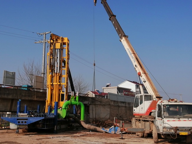 華陽(yáng)河大橋主橋水中墩基礎采用直徑2.5m鉆孔灌注樁,每墩橫向雙排三根布置,設計樁長(cháng)63m-64.5m,采用泵吸式反循環(huán)鉆進(jìn)成孔,垂直導管法灌注成樁,速度快,效率高,成孔質(zhì)量高。