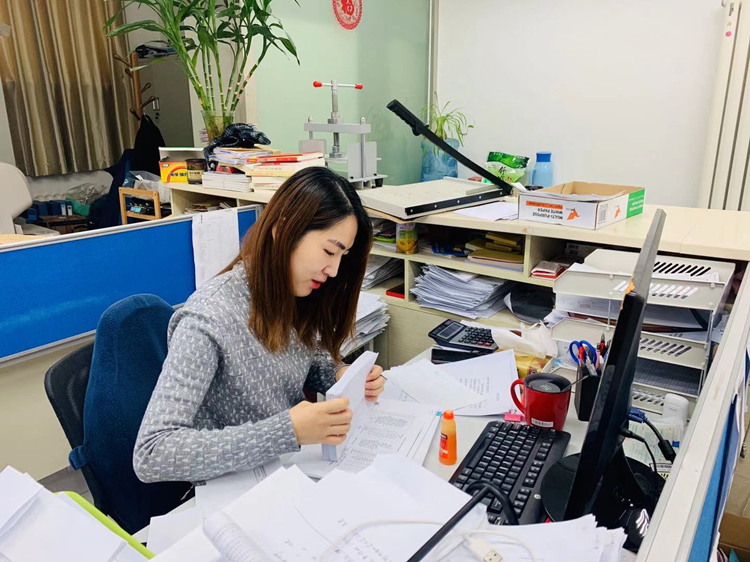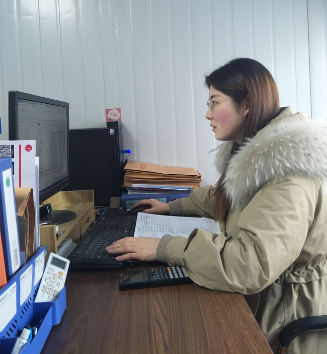 十公司財務(wù)科員張俠鳳(懷孕7個(gè)多月)堅守崗位處理審計往來(lái)函證回函統計工作