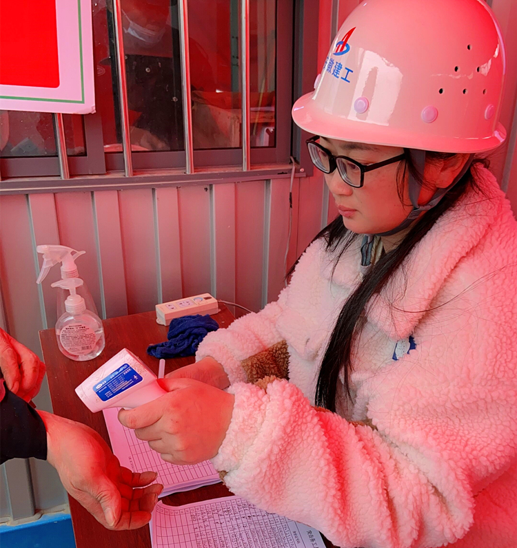 七公司御景黃城項目疫情防控監督員殷玲玲在工地入口認真做好體溫檢查登記工作