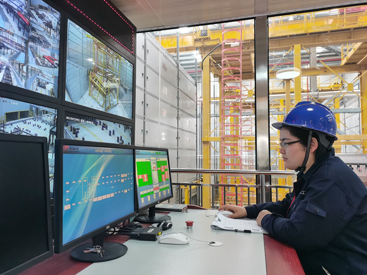 北城工業(yè)公司養護窯中央控制室操作員黃霜正在使用碼垛車(chē)進(jìn)行構件存取操作