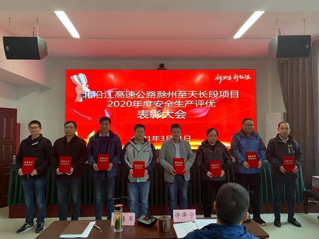 3月11日,在滁天高速項目2020年度安全生產(chǎn)評優(yōu)表彰大會(huì )上傳來(lái)喜訊,安徽路橋集團滁天高速04標獲得2020年度“安全生產(chǎn)先進(jìn)集體”、“安全生產(chǎn)先進(jìn)單位”的榮譽(yù),項目安全部楊瑞波同志榮獲2020年度“安全生產(chǎn)先進(jìn)個(gè)人”稱(chēng)號。