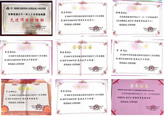 3月5日,安徽交控集團組織召開(kāi)蕪黃高速公路“縣縣通高速”攻堅行動(dòng)2021年生產(chǎn)調度會(huì ),安徽路橋集團蕪黃路基03標在2020年度蕪黃高速公路勞動(dòng)競賽中榮獲“先進(jìn)項目經(jīng)理部”“最美班組”、“勞動(dòng)競賽先進(jìn)班組”的榮譽(yù),項目負責人陳衛衛等同志分別獲得“優(yōu)秀項目負責人”、“優(yōu)秀生產(chǎn)副經(jīng)理”、“先進(jìn)生產(chǎn)工作者”、“優(yōu)秀專(zhuān)職安全員”等稱(chēng)號。