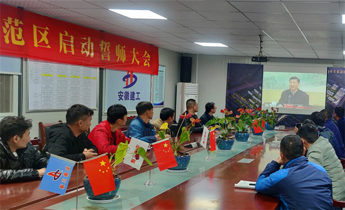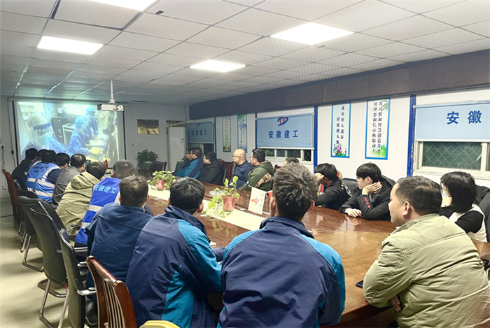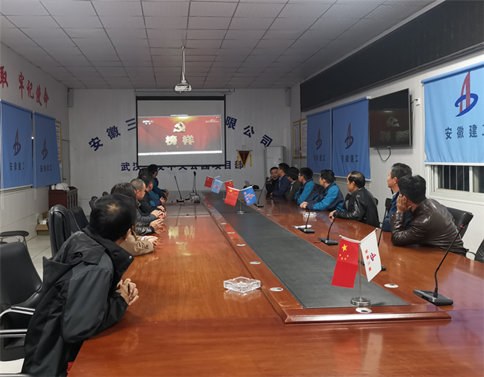 在六安第一中學(xué)擴建項目會(huì )議室,當天晚上參與項目建設的四公司、安裝公司、門(mén)窗公司聯(lián)合組織項目黨員及管理人員集中觀(guān)看專(zhuān)題片。次日一早,裝飾也組織六安一中項目參戰管理人員集中收看專(zhuān)題片,汲取榜樣力量。
