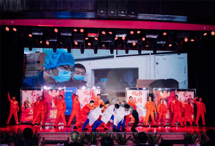由蚌埠公司、水建醫院、和盛物業(yè)、嘉和機電、機關(guān)帶來(lái)的原創(chuàng )音樂(lè )情景劇《戰“疫”》,作品以抗擊疫情為背景,講述了水利人凝心聚力、共克時(shí)艱,積極投身抗擊疫情戰斗的事跡,生動(dòng)再現搶建蚌埠“小湯山”醫院等點(diǎn)滴動(dòng)人故事。