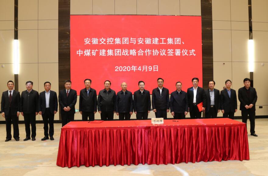 4月9日下午,安徽交控集團與安徽建工集團、中煤礦建集團戰略合作協(xié)議簽約儀式在合肥舉行。省國資委黨委書(shū)記、主任李中出席儀式并發(fā)表講話(huà)。安徽交控集團黨委書(shū)記、董事長(cháng)項小龍,安徽建工集團黨委書(shū)記、董事長(cháng)趙時(shí)運,中煤礦建集團黨委書(shū)記、董事長(cháng)趙士兵先后致辭。