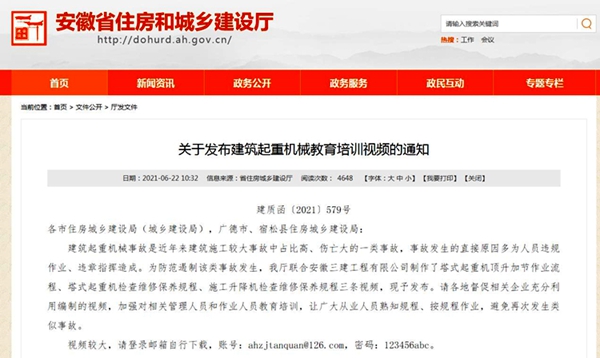 據悉,建筑起重機械教育培訓視頻是該公司安全教育系列片之一,片中對塔式起重機、施工升降機的檢查、維保、頂升加節作業(yè)安全管理要點(diǎn)做出了詳細說(shuō)明。