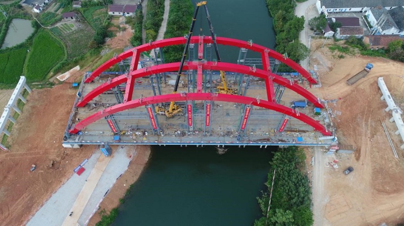【學(xué)黨史 見(jiàn)行動(dòng)】安建投資涇縣PPP項目S457寧涇公路涇縣段青弋江灌渠大橋工程主拱順利合龍