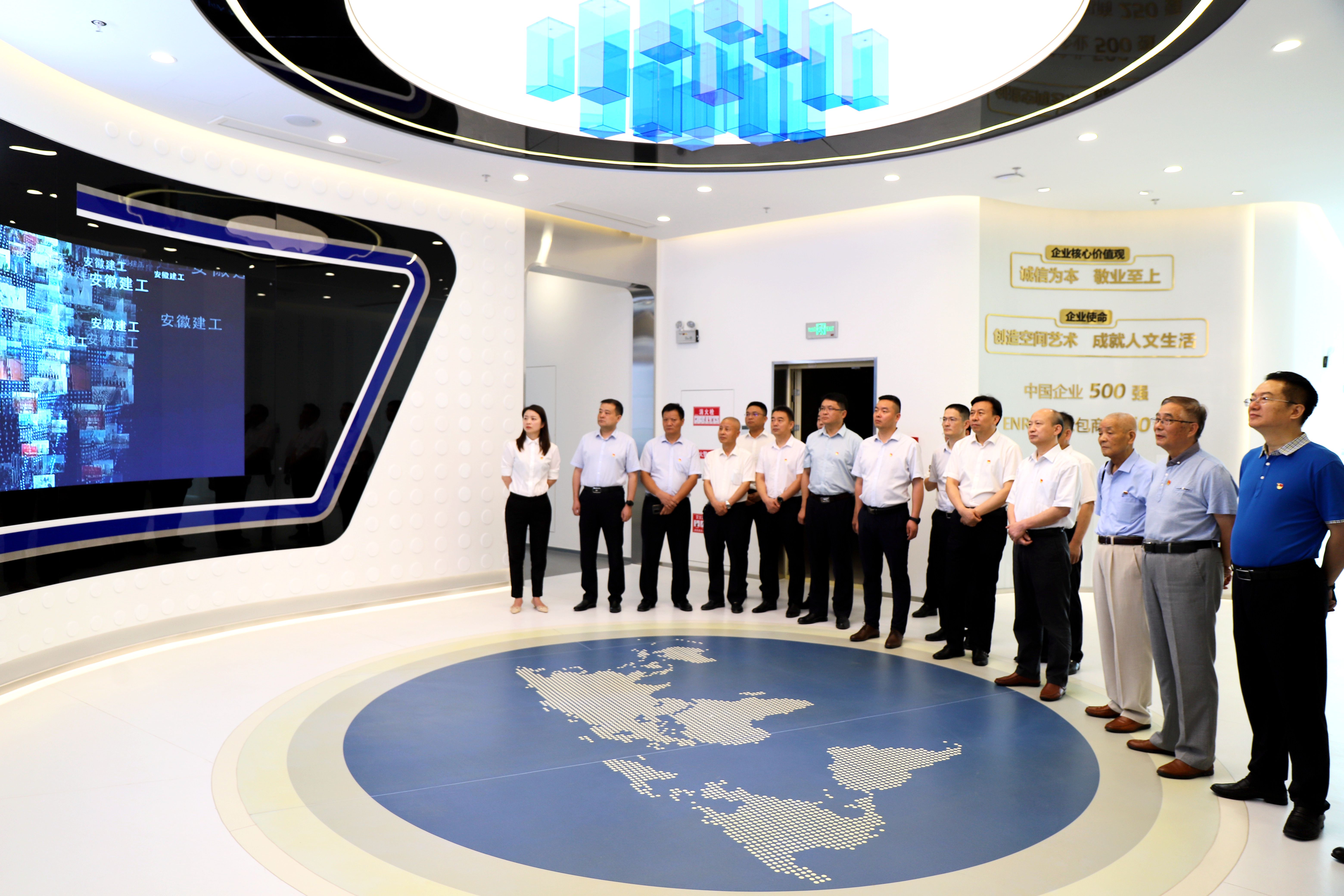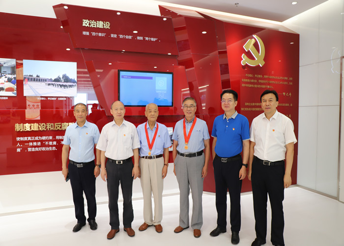 座談會(huì )前,與會(huì )人員參觀(guān)了新落成的集團展廳,共同回顧安徽建工近70年的發(fā)展歷程,全面了解集團各項業(yè)務(wù)開(kāi)展情況,通過(guò)一篇篇歷史文獻、一張張珍貴圖片、一件件獎牌獎杯,系統全面為參觀(guān)人員展開(kāi)了一幅企業(yè)各個(gè)發(fā)展時(shí)期的壯闊畫(huà)卷。在展廳黨建品牌建設文化墻前,趙時(shí)運、劉家靜等集團領(lǐng)導向老黨員代表劉振武、郎小懷現場(chǎng)頒發(fā)“光榮在黨50年”紀念章,并合影留念。