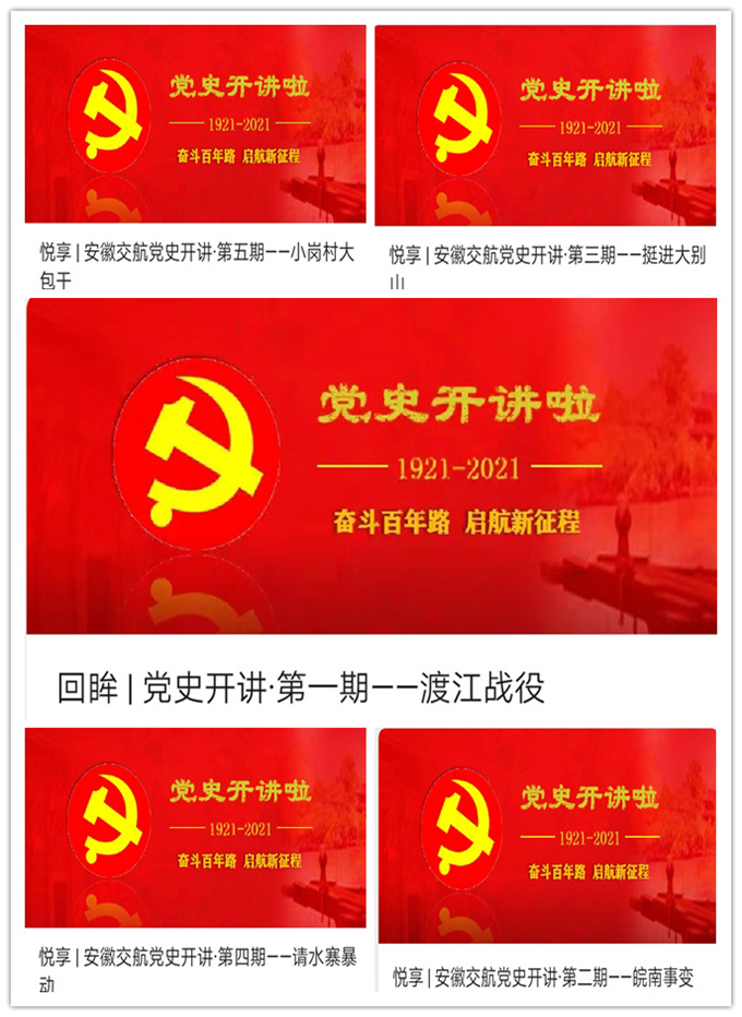 結合當前黨史學(xué)習教育實(shí)際,充分運用安徽黨史文庫平臺線(xiàn)上資源,創(chuàng )新學(xué)習教育形式,充分運用我們身邊的“安徽黨史故事”,開(kāi)設《黨史開(kāi)講》欄目,邀請公司領(lǐng)導講述在江淮大地上發(fā)生的黨史故事。截至目前,《黨史開(kāi)講》欄目已經(jīng)制作5期,受眾人數達到500余人次,點(diǎn)擊量達到1500多人次,分別講述了在安徽大地上發(fā)生的渡江戰役、皖南事變、挺進(jìn)大別山、請水寨暴動(dòng)和小崗大包干五個(gè)黨史故事。