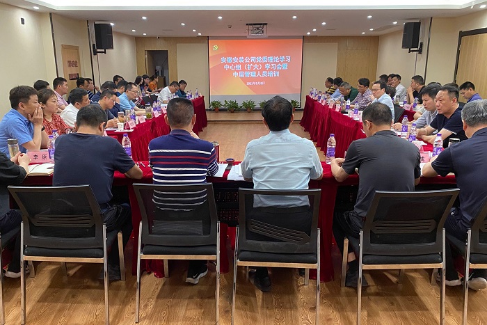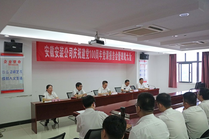 5月8日,公司黨委在阜陽(yáng)潁東中醫院建設PPP項目舉辦安徽安裝公司黨委理論學(xué)習中心組(擴大)學(xué)習會(huì )暨中層管理人員培訓黨史學(xué)習教育專(zhuān)題黨課報告會(huì )。公司黨委書(shū)記、董事長(cháng)胡六中作了題為《學(xué)黨史牢記初心 辦實(shí)事踐行使命》的黨課報告,公司中層管理人員及機關(guān)全體員工等共90余人參加;7月5日,公司黨委召開(kāi)慶祝建黨100周年黨課報告暨表彰大會(huì ),公司黨委書(shū)記、董事長(cháng)作了題為《風(fēng)雨輝煌百年路 高歌奮進(jìn)新征程》的黨課報告,公司中層管理人員及黨員干部職工等共90余人參加。
