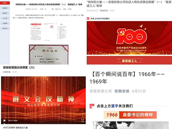 指尖微黨課課堂。為慶祝建黨100周年,促進(jìn)黨史學(xué)習教育方式多樣化,讓廣大基層一線(xiàn)黨員尤其是青年黨員同志廣泛參與到黨史宣講中來(lái),公司黨委依托公司官方微信公眾號重新打造安徽安裝的黨課品牌——“指尖微黨課”課堂,組織開(kāi)展了“講好紅色精神 凝聚奮進(jìn)力量”指尖微黨課活動(dòng)。所屬各黨支部積極推薦黨員同志,尤其是基層一線(xiàn)的黨員同志參與到公司黨委“指尖微黨課宣講員”隊伍中來(lái),此次指尖微黨課課堂每集時(shí)長(cháng)5-8分鐘,短小簡(jiǎn)潔且內涵豐富,以五四精神、“紅船精神”、井岡山精神、延安精神、航天精神、偉大抗疫精神等人民熔鑄鍛造的偉大紅色精神為主題,講述這些紅色精神背后的感人故事,圍繞每一期紅色精神主題,主講人結合自身工作實(shí)際,談感想談體會(huì )。指尖微黨課旨在變“被動(dòng)學(xué)”為“主動(dòng)講”,變“集中念開(kāi)會(huì )讀”為“隨時(shí)看隨地學(xué)”,解決了公司項目點(diǎn)多面廣,黨員分散不易集中系統學(xué)習的問(wèn)題,現在只要打開(kāi)手機,利用零碎時(shí)間就可以通過(guò)身邊人的宣講更直觀(guān)更生動(dòng)地領(lǐng)略黨史中的奮進(jìn)力量,切實(shí)做到“人人都是宣講員、黨課揣進(jìn)口袋中”。