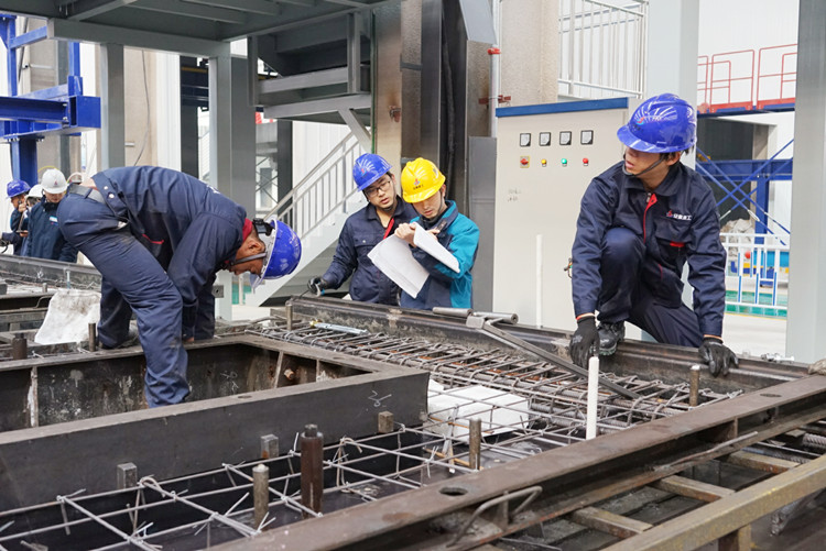 在集團領(lǐng)導系統謀劃下,項目實(shí)施團隊抗疫情、斗洪災,實(shí)現8個(gè)月建成投產(chǎn),充分展現了安徽建工人“特別能吃苦、特別能戰斗”的工作作風(fēng)。北城工業(yè)公司借鑒了安徽建工建筑工業(yè)有限公司(以下簡(jiǎn)稱(chēng)建筑工業(yè)公司)的成功經(jīng)驗,配有環(huán)保型智能攪拌站和國內先進(jìn)的試驗室,可實(shí)現年產(chǎn)預制PC構件15萬(wàn)立方米和管片10萬(wàn)立方米的生產(chǎn)規模,能同時(shí)滿(mǎn)足約300萬(wàn)平方米房建工程和1.2萬(wàn)環(huán)地鐵管片建設需要。產(chǎn)品涵蓋外墻板、內墻板、疊合板、管廊、箱涵等房建、市政、軌道交通等領(lǐng)域,并可進(jìn)行鋼筋網(wǎng)片和桁架鋼筋配送等。