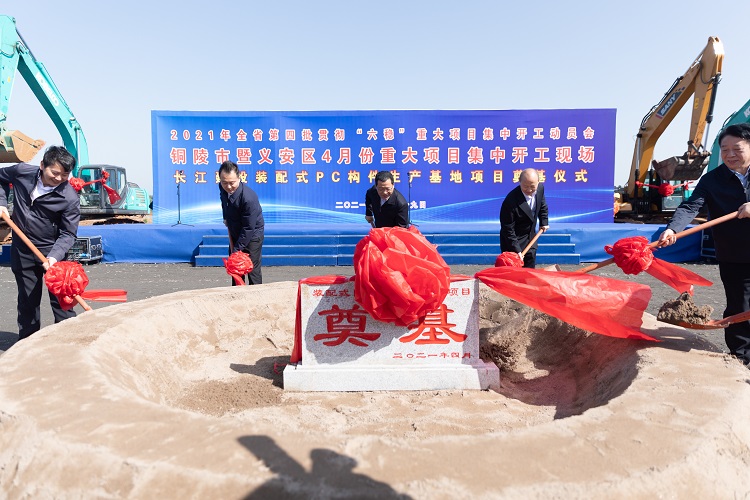 安徽建工長(cháng)江建設投資有限公司新型建筑工業(yè)化基地位于銅陵市義安區,系銅陵市首個(gè)裝配式建筑生產(chǎn)基地,規劃占地面積約224畝,首期投資額約3億元,規劃總建筑面積約12萬(wàn)m2,力爭2021年底建成投產(chǎn),首期建成后計劃年產(chǎn)裝配式構件15萬(wàn)m3、商品混凝土30萬(wàn)m3。該基地由安徽建工集團授權安建總承包負責實(shí)施,由長(cháng)江建投投資建設。4月29日,集團黨委書(shū)記、董事長(cháng)趙時(shí)運出席全省貫徹“六穩”銅陵市暨義安區重大項目集中開(kāi)工儀式,和銅陵市委市政府等各級領(lǐng)導共同為項目培土奠基,安徽建工長(cháng)江建投新型建筑工業(yè)化基地正式開(kāi)工建設。