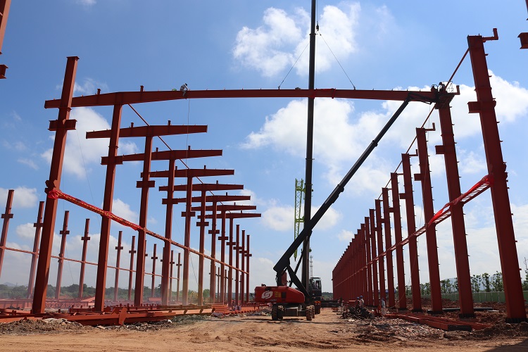 “加速度”推進(jìn)基地建設。在集團、銅陵市委市政府的關(guān)心支持下,安建總承包和長(cháng)江建投創(chuàng )造條件大干快上,緊盯基地建設目標不放松,克服解決回填土方量大等困難,倒排工期、優(yōu)化流程,積極整合設計、土建、鋼結構、專(zhuān)業(yè)設備等資源,推進(jìn)設計-施工-設備安裝等協(xié)調互通和聯(lián)動(dòng)實(shí)施,帶動(dòng)集團所屬相關(guān)單位產(chǎn)業(yè)鏈發(fā)展。全面開(kāi)展“學(xué)黨史頌百年華誕、開(kāi)新局強集團本部”主題實(shí)踐和“大干100天”勞動(dòng)競賽,PC生產(chǎn)工廠(chǎng)主鋼構于8月底全部組裝完成,在趕工期搶進(jìn)度的同時(shí),嚴控技術(shù)標準和建設質(zhì)量,積極引進(jìn)新技術(shù)、新工藝和新設備,推進(jìn)數字化、智能化等在新基地各環(huán)節應用。