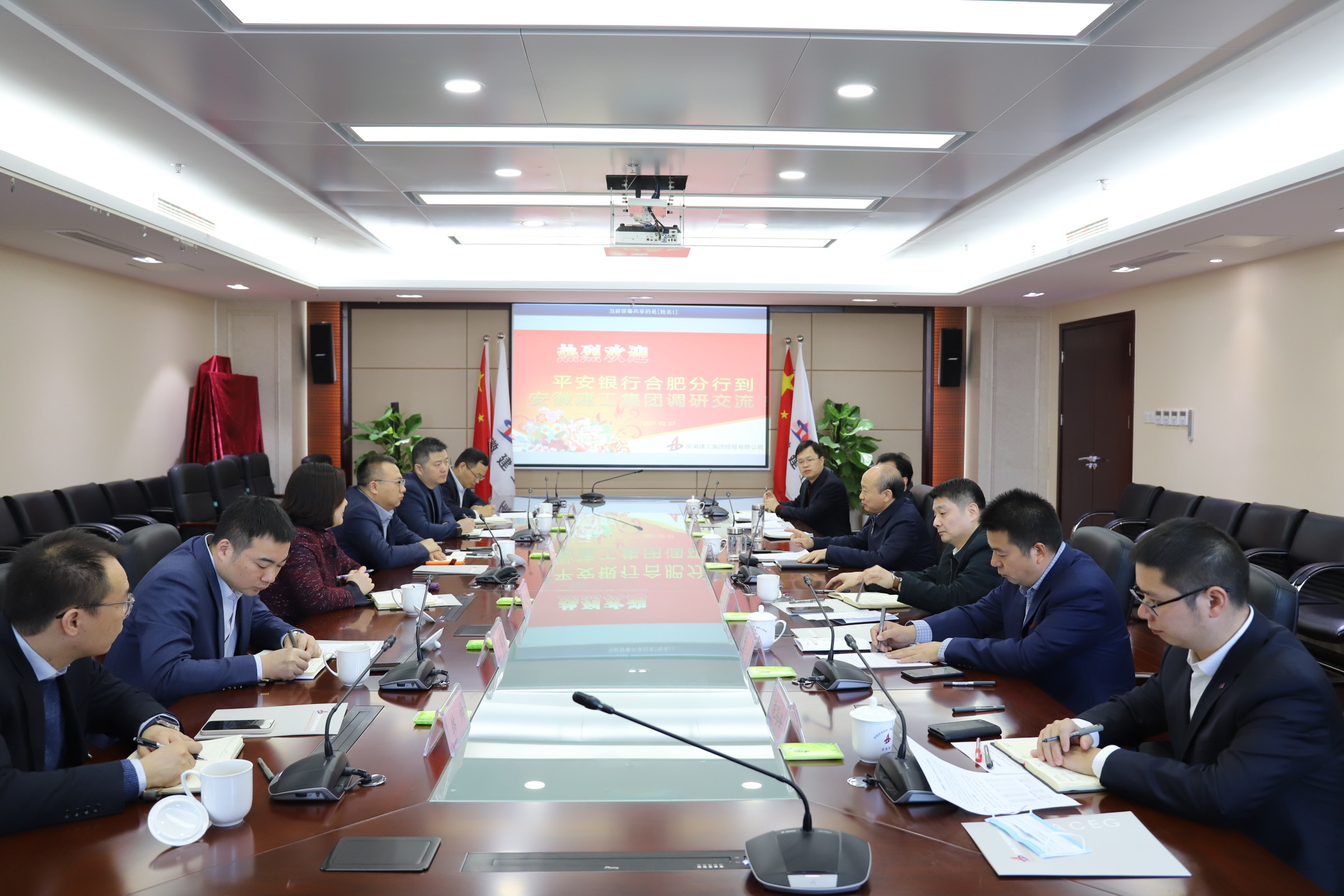 2月7日上午,建工控股黨委書(shū)記、董事長(cháng)趙時(shí)運在安建國際大廈會(huì )見(jiàn)平安銀行合肥分行黨委書(shū)記徐凱一行,雙方就銀企合作進(jìn)行了深入交流。