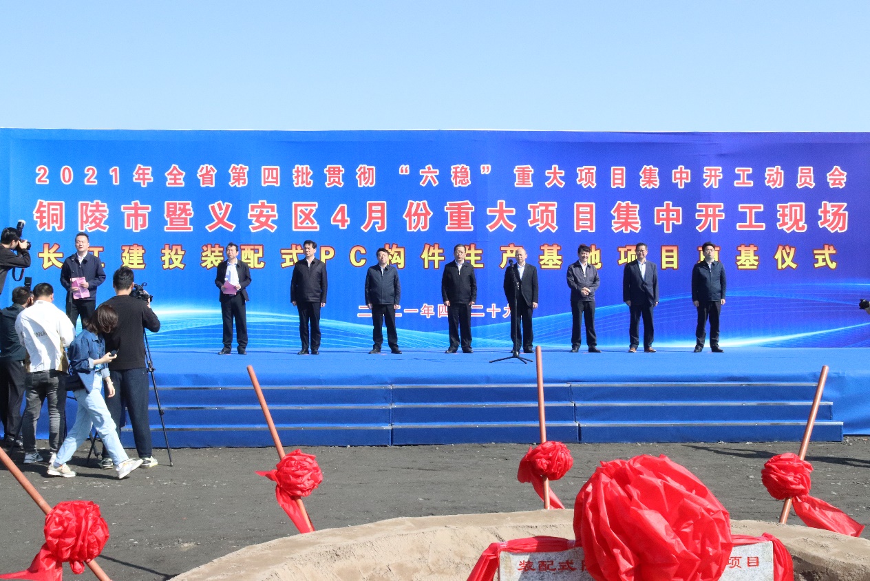 4月29日上午,全省貫徹“六穩”銅陵市暨義安區4月份重大項目集中開(kāi)工儀式在安徽建工長(cháng)江建設投資有限公司新型建筑工業(yè)化基地舉行。銅陵市委書(shū)記、市人大常委會(huì )主任丁純出席并宣布項目開(kāi)工,市委副書(shū)記、代市長(cháng)孔濤主持,建工控股黨委書(shū)記、董事長(cháng)趙時(shí)運出席并致辭。市領(lǐng)導張夢(mèng)生、程雙林、潘榮華、汪宜武等參加,市委常委、常務(wù)副市長(cháng)程雙林通報全市4月份重大項目集中開(kāi)工情況,義安區委書(shū)記汪發(fā)進(jìn)講話(huà)。