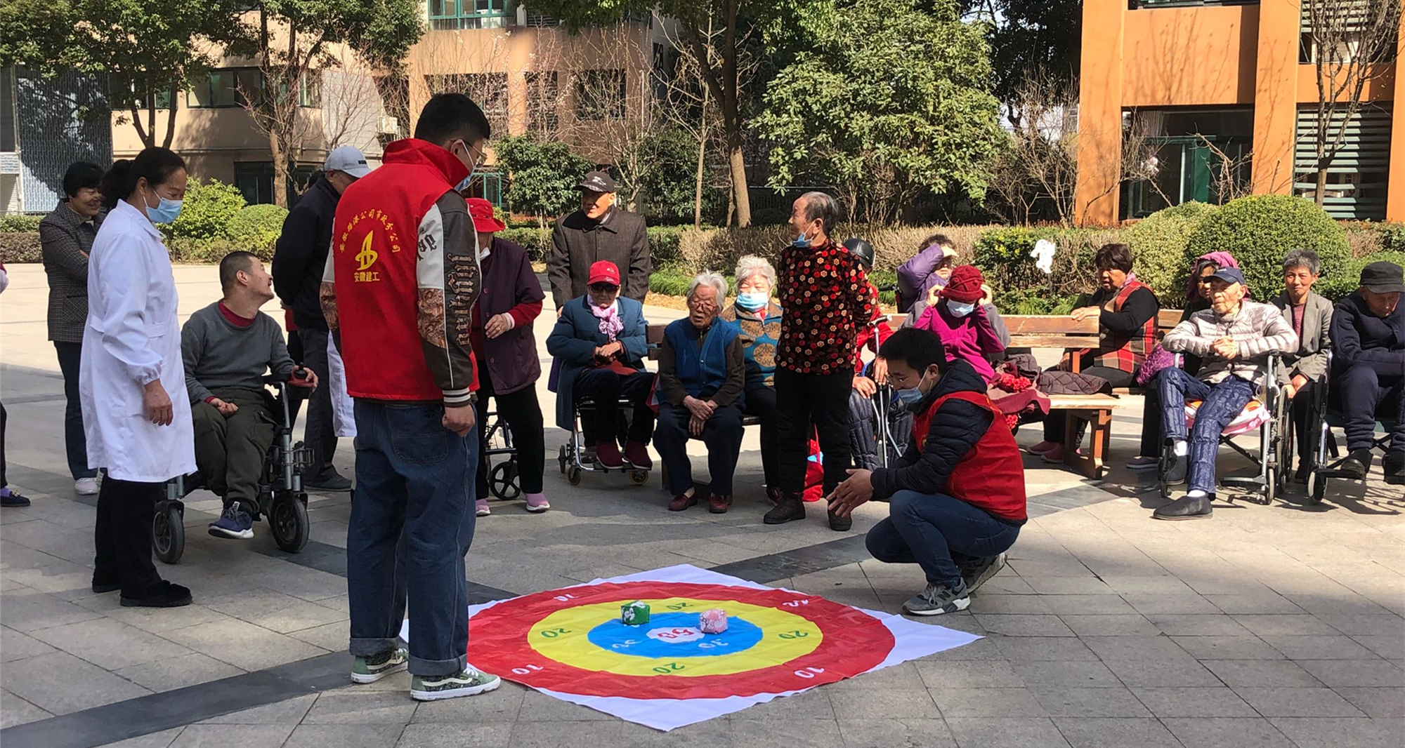 活動(dòng)現場(chǎng)志愿者們陪著(zhù)老人們做游戲、聊天談心,為老人們打掃庭院、表演才藝,并送上慰問(wèn)品。