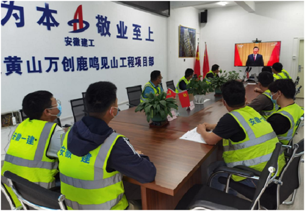 安徽一建組織觀(guān)慶??粗袊伯a(chǎn)主義青年團建團100周年大會(huì )直播節目