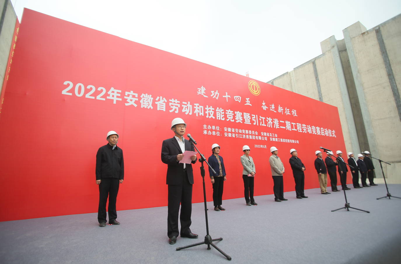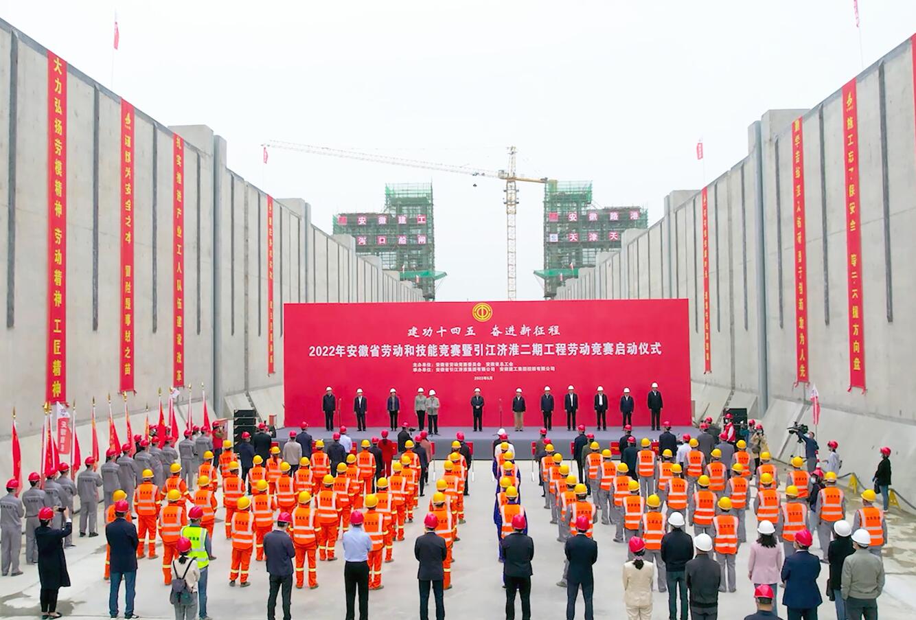 5月11日上午,由安徽省勞動(dòng)競賽委員會(huì )、安徽省總工會(huì )主辦,安徽建工集團控股有限公司、安徽省引江濟淮集團有限公司承辦的2022年安徽省勞動(dòng)和技能競賽暨引江濟淮二期工程勞動(dòng)競賽啟動(dòng)儀式在安徽省路港工程有限責任公司承建的引江濟淮工程派河口船閘項目現場(chǎng)舉行。