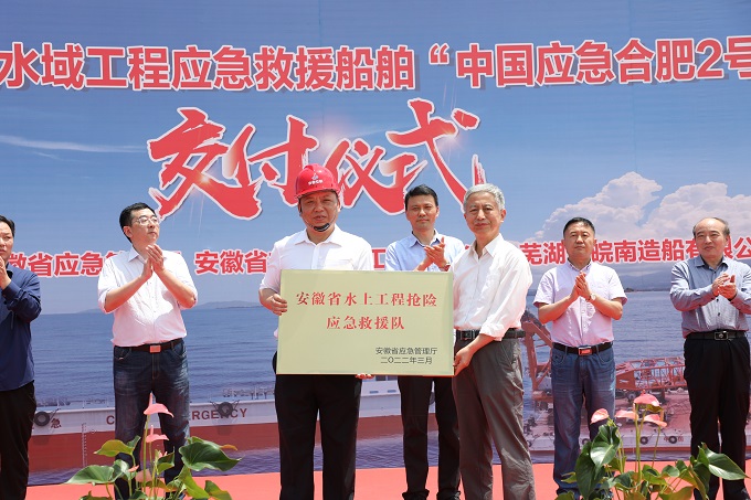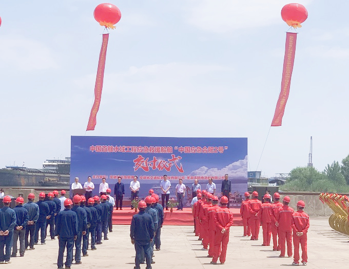 5月23日上午11時(shí)18分,伴隨著(zhù)船舶隆隆的汽笛聲,在隆重的交付儀式中,中國首艘水域工程應急救援船舶“中國應急合肥2號”正式入列安徽交航應急救援基地。安徽省應急管理廳一級巡視員汪黎明,控股公司副總工程師、股份公司首席信息官吳紅星出席儀式。應急管理廳救援協(xié)調和預案管理處處長(cháng)魏文斌、三級調研員沈磊,蕪湖市應急管理局副局長(cháng)程克柱,安徽省皖江船舶檢驗局副局長(cháng)孫成嶺、王其端,蕪湖市皖南造船有限公司副總經(jīng)理陸青松等參加上述儀式。公司黨委書(shū)記、董事長(cháng)方申柱主持儀式。