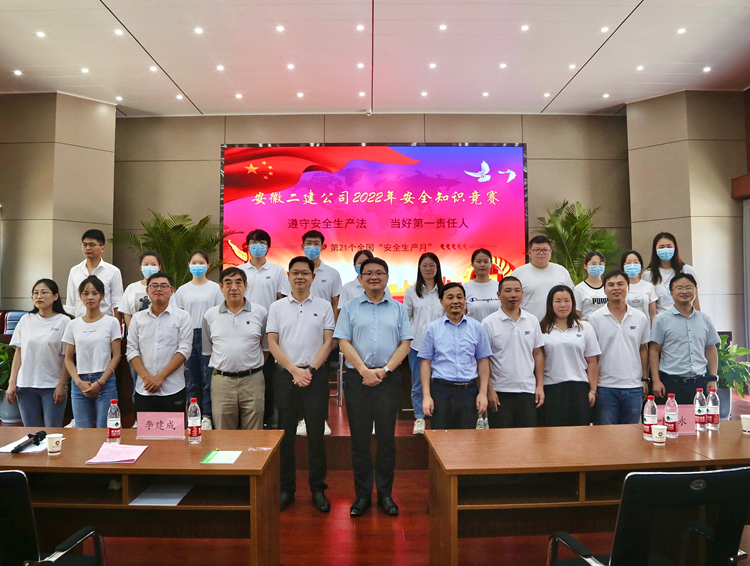 今年六月是第21個(gè)“全國安全生產(chǎn)月”,為了貫徹落實(shí)活動(dòng)主題“遵守安全生產(chǎn)法 當好第一責任人”,用以賽促學(xué)、以活動(dòng)促宣傳的方式提高廣大職工的安全意識,6月17日上午,公司工會(huì )牽頭,與安全管理部聯(lián)合舉辦了安徽二建2022年安全知識競賽活動(dòng)。公司黨委副書(shū)記、總經(jīng)理李建成,黨委副書(shū)記、工會(huì )主席王軍出席活動(dòng),黨委委員、副總經(jīng)理葉和永,安全總監、安全管理部主任曹建,工會(huì )副主席、女工委主任王俊出席并擔任評委。