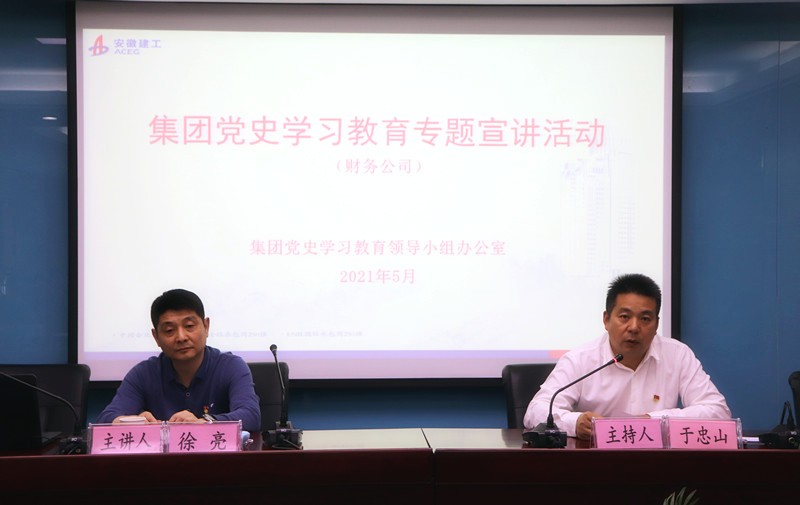 根據集團黨史學(xué)習教育領(lǐng)導小組《關(guān)于做好黨史專(zhuān)題宣講工作的實(shí)施方案》部署,5月21日集團第十八宣講組到安建金融開(kāi)展了黨史學(xué)習教育專(zhuān)題宣講會(huì )。會(huì )議由股份公司黨委委員、財務(wù)總監徐亮宣講,公司黨總支副書(shū)記、總經(jīng)理于忠山主持,金融板塊全體黨員及入黨積極分子參加。