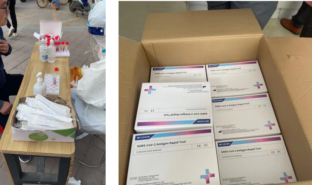 “您好,今天的抗原檢測開(kāi)始了?!彼贿叞l(fā)放試劑盒,一邊叮囑居民相關(guān)注意事項,這個(gè)是她今天的主要工作,從早上6點(diǎn)多和晚上8點(diǎn)開(kāi)始,獨自承擔了兩棟樓的抗原試劑發(fā)放和回收工作,挨家挨戶(hù)敲響了住戶(hù)的家門(mén),面對個(gè)別住戶(hù)說(shuō)打擾了他們睡眠的些許抱怨,她始終面帶著(zhù)微笑,耐心解釋和等待著(zhù)。就這樣一家一戶(hù)的發(fā)放和最終收集檢測的試劑,晚上將近11點(diǎn),她才結束了一天的志愿服務(wù)工作。