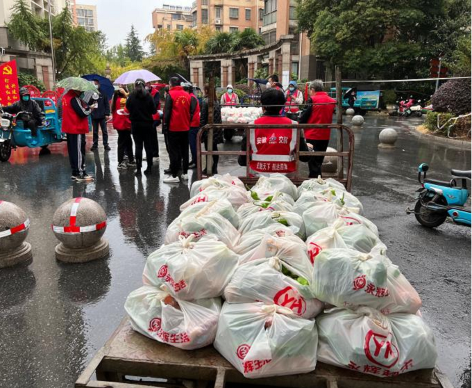 10月26日下午15時(shí),項目部接到嘉山路街道工作人員電話(huà),轄區內美晨雅閣小區急需人員、車(chē)輛協(xié)助發(fā)放居民生活物資。項目部第一時(shí)間組織青年志愿者前往該小區提供志愿服務(wù),志愿者們與社區工作人員密切配合,一邊緊張有序地裝卸物資,逐個(gè)樓棟進(jìn)行發(fā)放,一邊耐心地安撫居民情緒,維持現場(chǎng)秩序,直至晚上21時(shí),順利完成小區一千多戶(hù)居民生活物資的發(fā)放,切實(shí)保障了群眾的正常生活。