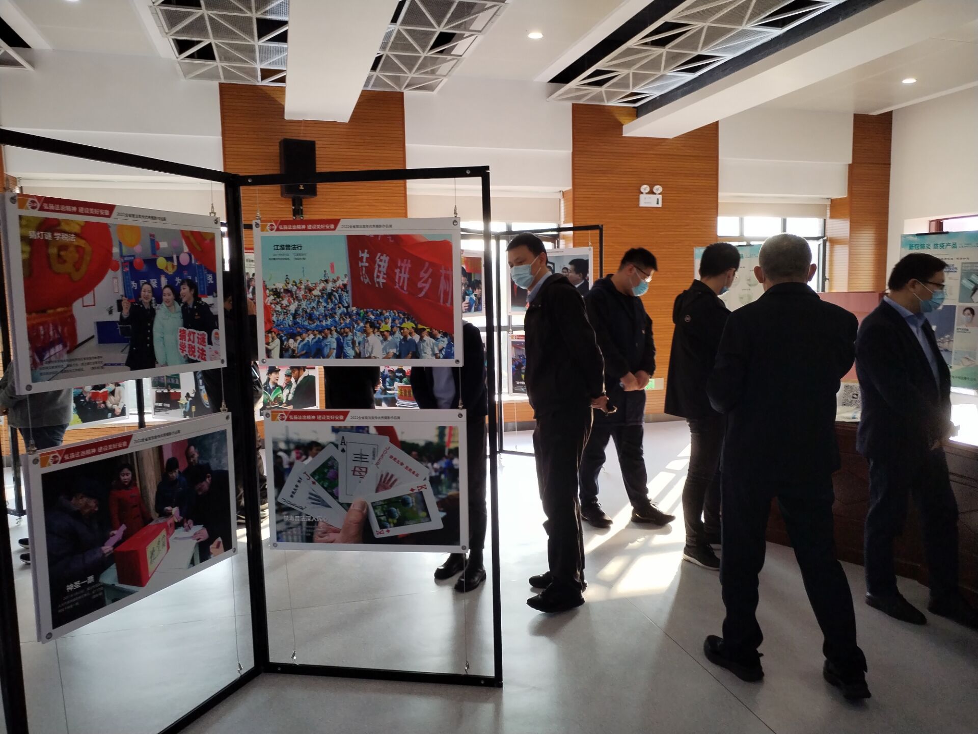 在法治宣傳教育長(cháng)廊,大家分別進(jìn)入展示區、體驗區、活動(dòng)區,駐足觀(guān)看憲法要義、習近平法治思想、民法典、盛世要法、普法歷程、多功能展廳展示內容。長(cháng)廊以“美好安徽·法治同行”為主題,設計理念和構思精心、獨特,是全國首個(gè)省級法治宣傳教育館、展示館、體驗館。作為開(kāi)展群眾性法治文化活動(dòng)的線(xiàn)下陣地,場(chǎng)館通過(guò)圖文展出、光電影像、專(zhuān)題視頻、互動(dòng)體驗等方式讓同志們在“游園式”活動(dòng)中留下深刻印象。