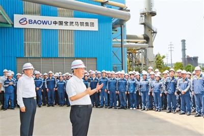馬鞍山市因鋼而設、因鋼而興。習近平來(lái)到中國寶武馬鋼集團,了解企業(yè)生產(chǎn)經(jīng)營(yíng)情況,察看重點(diǎn)產(chǎn)品展示。隨后,習近平走進(jìn)優(yōu)質(zhì)合金棒材車(chē)間,察看加熱爐、初軋機、中軋機等運行情況。車(chē)間外,企業(yè)勞動(dòng)模范、工人代表看到總書(shū)記來(lái)了,熱烈鼓掌。習近平親切地同大家打招呼。他指出,疫情發(fā)生以來(lái),馬鋼克服困難,率先復工復產(chǎn),上半年產(chǎn)量和營(yíng)收同比實(shí)現“雙升”。要抓住深化國有企業(yè)改革和推動(dòng)長(cháng)三角一體化發(fā)展的重大機遇,加強新材料新技術(shù)研發(fā),開(kāi)發(fā)生產(chǎn)更多技術(shù)含量高、附加值高的新產(chǎn)品,增強市場(chǎng)競爭力。勞動(dòng)模范是共和國的功臣,要大力弘揚勞模精神。