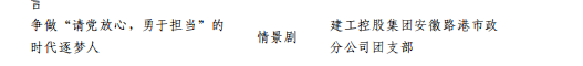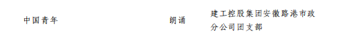 近日,共青團安徽省委下發(fā)《關(guān)于第五屆全省“青年之家”優(yōu)秀活動(dòng)項目、全省優(yōu)秀微團課及第一屆全省優(yōu)秀藝術(shù)團課評選結果的通報》。建工路港上報的《爭做“請黨放心,勇于擔當”的時(shí)代逐夢(mèng)人》、《中國青年》2項作品均榮獲第一屆全省優(yōu)秀藝術(shù)團課二等獎。