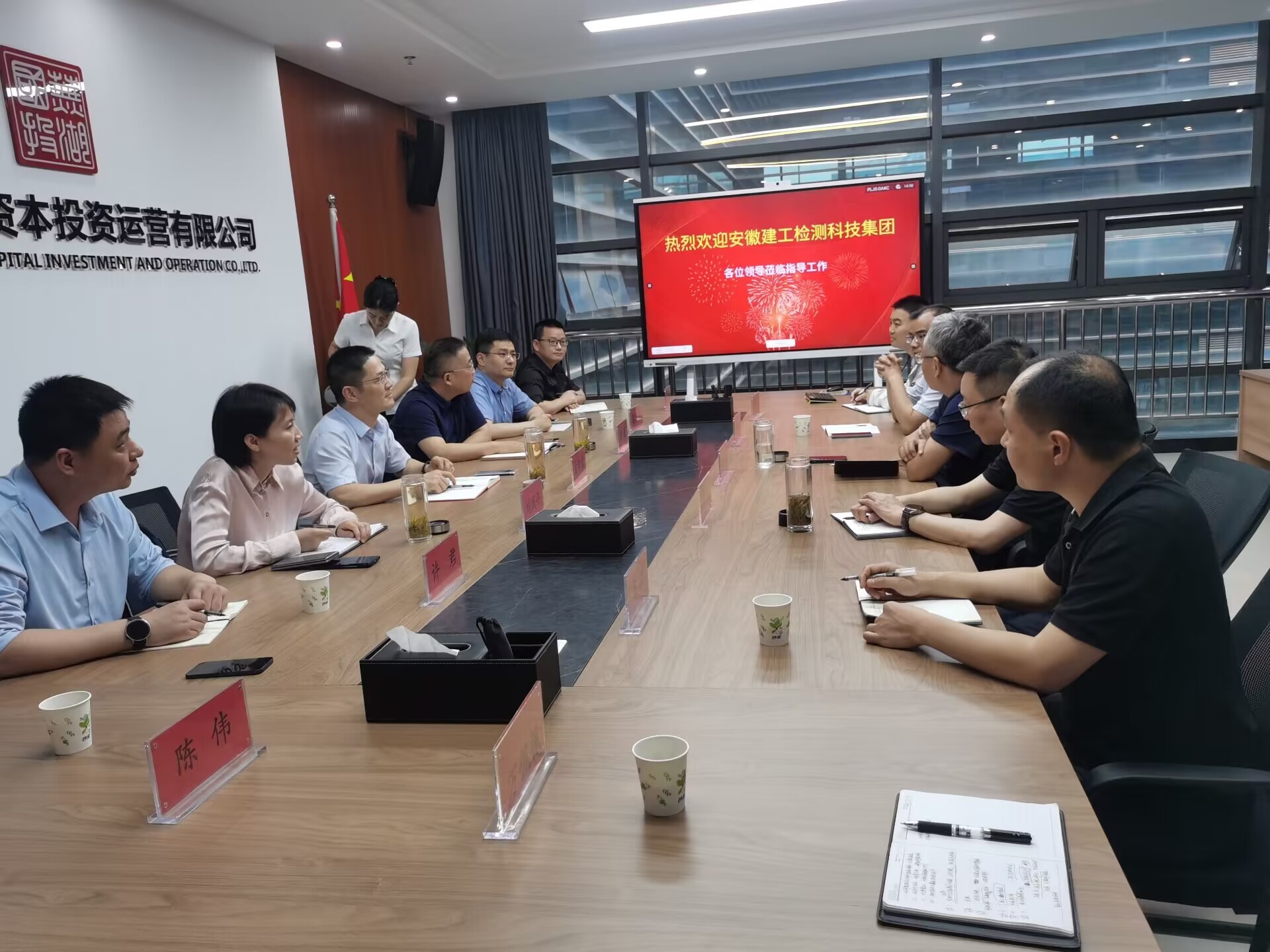 5月30日,安建檢測黨委書(shū)記、董事長(cháng)方申柱率隊赴蕪湖市國有資本投資運營(yíng)有限公司開(kāi)展主題教育調研,蕪湖市國有資本投資運營(yíng)有限公司黨委書(shū)記、董事長(cháng)靳大鳴熱情接待并召開(kāi)座談會(huì )。
