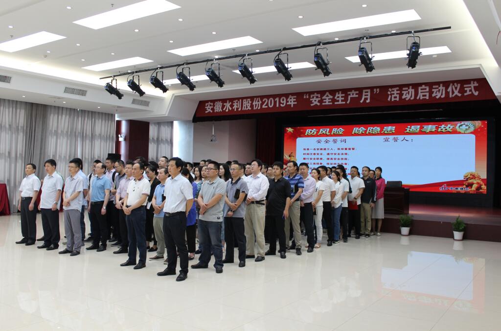 5月31日上午,安徽水利開(kāi)發(fā)股份有限公司舉行了以“防風(fēng)險、除隱患、遏事故”為主題的2019年“安全生產(chǎn)月”活動(dòng)啟動(dòng)儀式。股份公司安委會(huì )主任、總經(jīng)理許克順出席儀式并講話(huà),股份公司安委會(huì )副主任、副總經(jīng)理孫學(xué)軍主持儀式并領(lǐng)誓,股份公司總工程師楊斌、股份機關(guān)全體員工、安建建設、安建海外及安建財務(wù)相關(guān)人員參加了啟動(dòng)儀式。