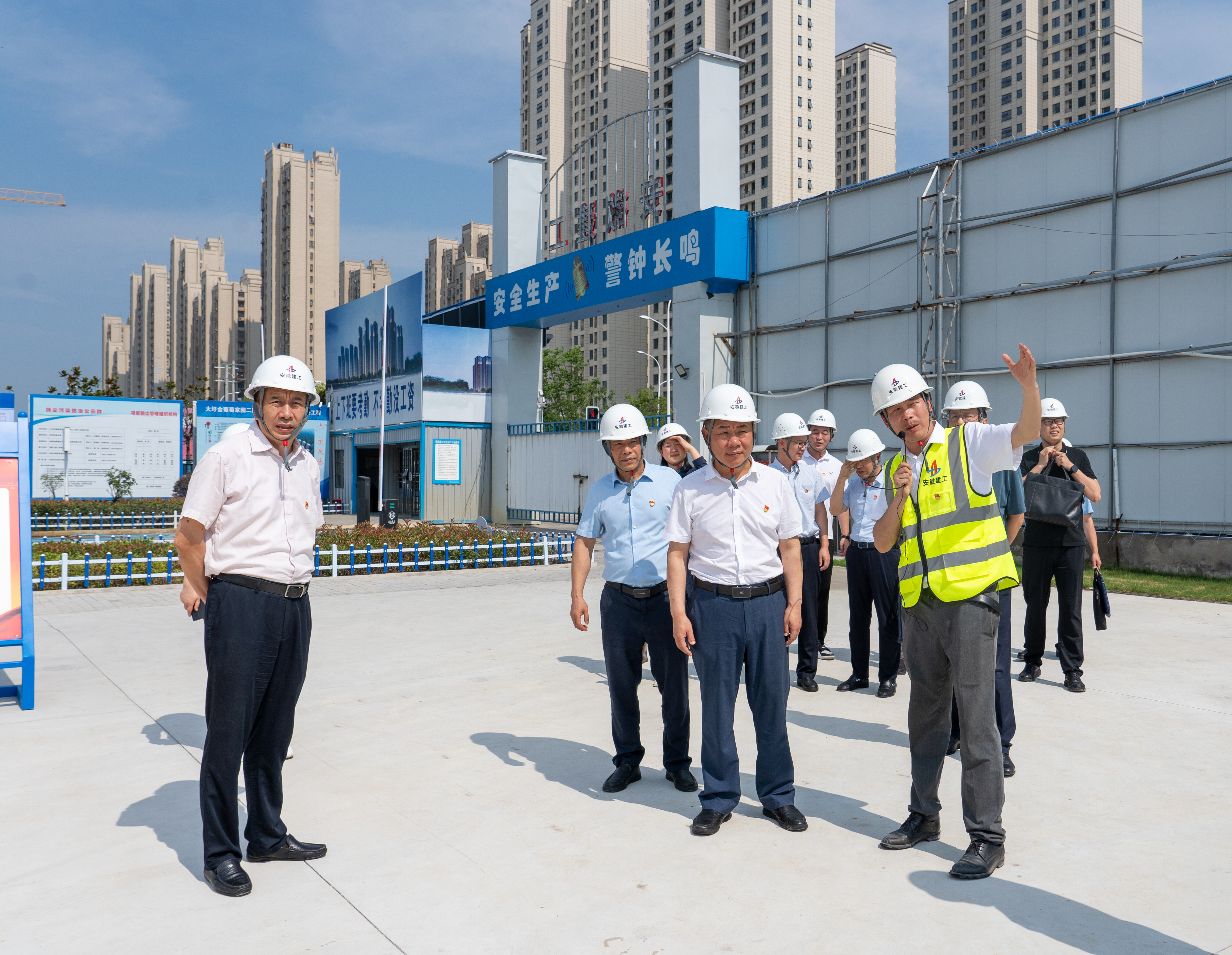 段海一行先后深入項目現場(chǎng)和黨員活動(dòng)室,對項目樣板展牌、智慧展廳、鋁模爬架、裝配式等新技術(shù)、新工藝以及基層黨建活動(dòng)開(kāi)展情況進(jìn)行觀(guān)摩和了解,對項目生產(chǎn)經(jīng)營(yíng)工作和“彩虹扣”黨建品牌、黨員1+N監督崗等特色活動(dòng)的開(kāi)展表示肯定。