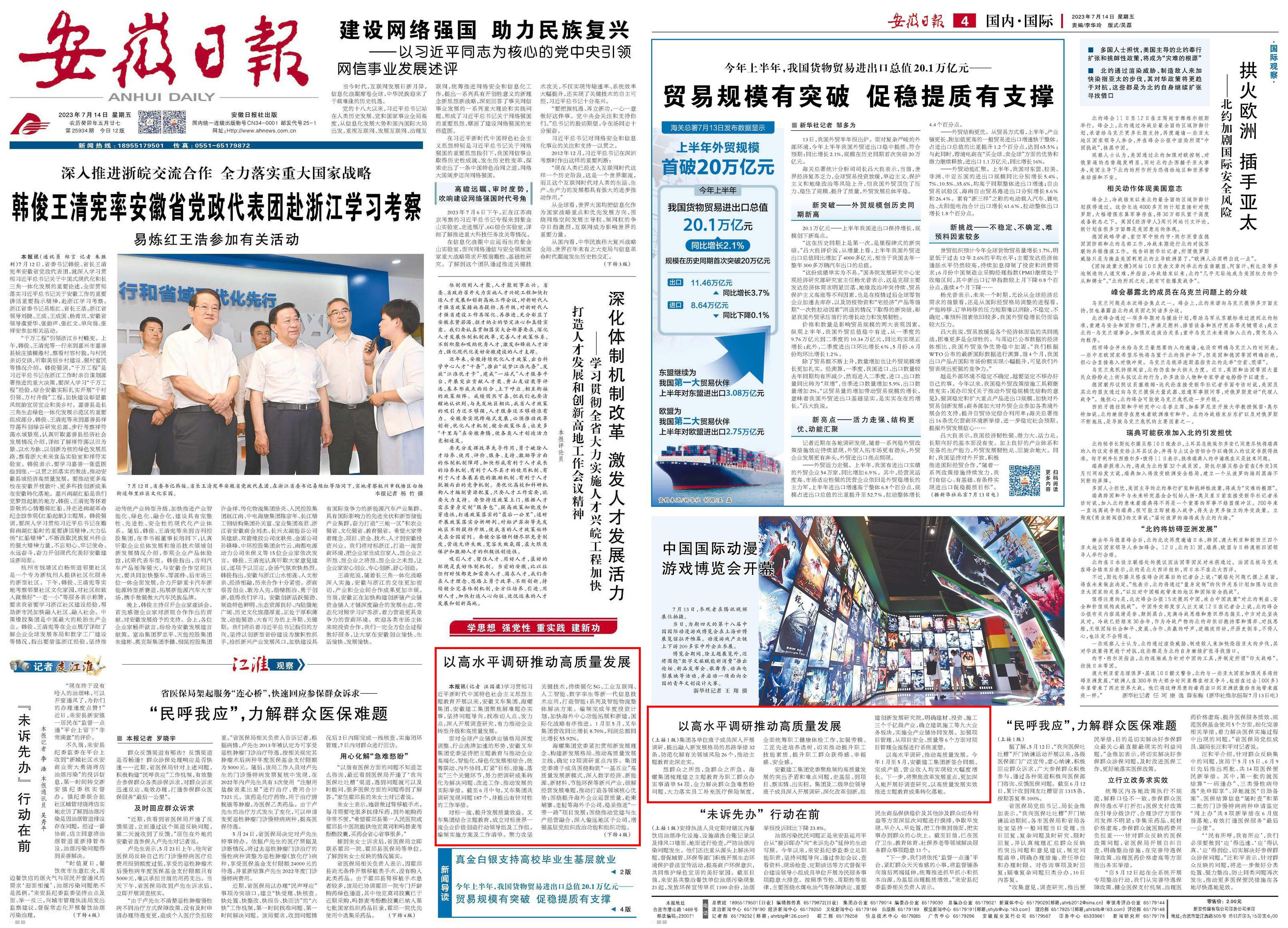 7月14日,安徽日報以《以高水平調研推動(dòng)高質(zhì)量發(fā)展》為題報道安徽建工集團主題教育開(kāi)展情況。以下是報道部分內容: