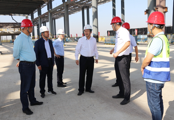 10月17日,建工股份黨委副書(shū)記、副董事長(cháng)、總經(jīng)理、機場(chǎng)總指揮長(cháng)李有貴到合肥新橋國際機場(chǎng)T2航站樓項目調研。