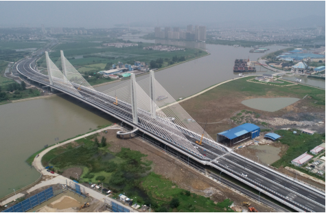 巢湖亞父路位于合肥市合巢經(jīng)開(kāi)區,全長(cháng)約4.65公里,其中裕溪河特大橋全橋長(cháng)974米,為雙塔雙索面預應力混凝土斜拉橋,橋面寬44.5米,為目前國內采用前支點(diǎn)牽索掛籃工藝施工的最寬橋梁。