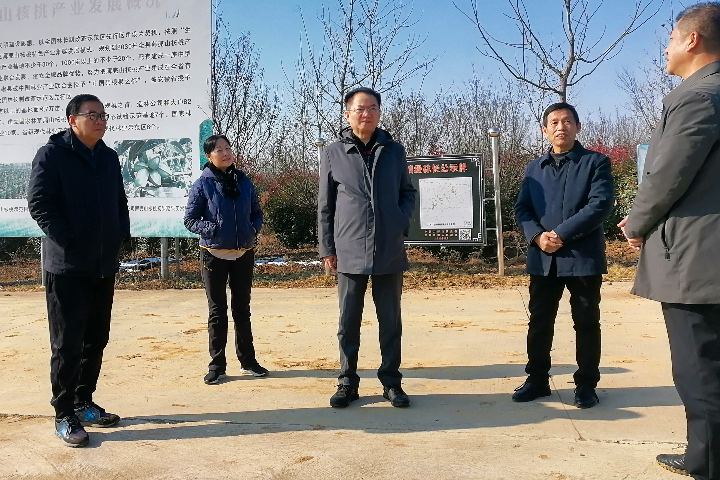 劉家靜一行先后走訪(fǎng)了薄殼山核桃種植基地和楊慶福家庭農場(chǎng),實(shí)地察看了集團幫扶項目實(shí)施情況,并與全椒縣人大常委會(huì )副主任秦安明、二郎口鎮黨委書(shū)記董彪舉行工作座談。