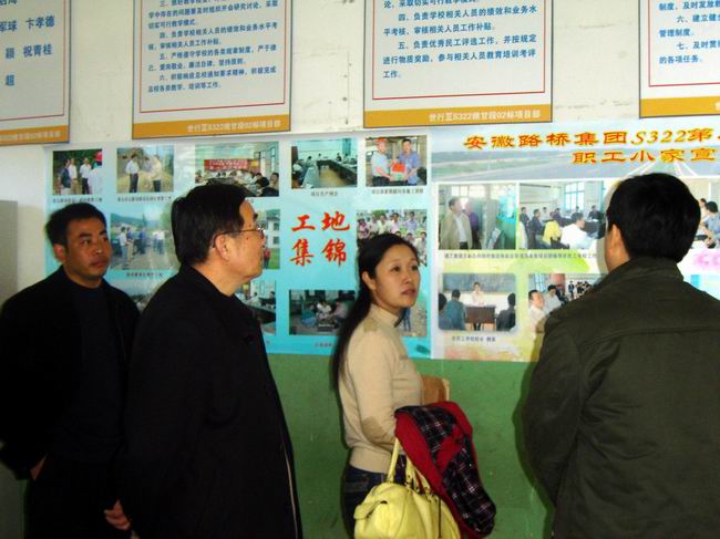 劉主席指出,職工小家建設和雙爭競賽活動(dòng)總體目標是提高項目部綜合管理水平,促進(jìn)項目各項管理,從而提高項目經(jīng)濟效益,進(jìn)而提高企業(yè)的整體社會(huì )效益。從檢查的情況看:S322項目部精神狀態(tài)好,文明創(chuàng )建形式多樣,農民工學(xué)校舍得投入,落在實(shí)處,節約增效成果顯著(zhù),職工生活、各項權益有較好保障,各類(lèi)資料齊全,活動(dòng)得到了較好開(kāi)展。