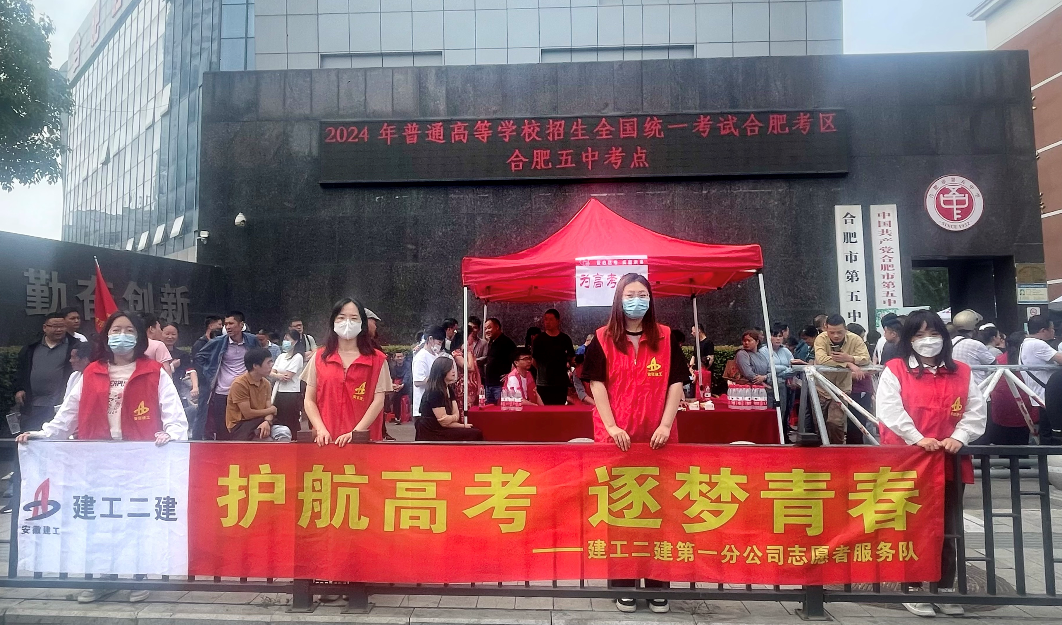 6月7日上午,建工二建團委分別在合肥市第五中學(xué)(長(cháng)江校區)、合肥三十八中(和平路校區)高考考點(diǎn)組織團員青年開(kāi)展愛(ài)心助力高考志愿服務(wù)活動(dòng)。