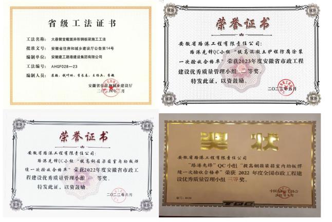 在文忠路項目施工期間,他還作為QC小組成員,參與并獲得了“提高鋼箱梁箱室內肋板焊縫一次驗收合格率”2022年度安徽省市政工程建設優(yōu)秀質(zhì)量管理小組一等獎,及2022年度全國市政工程建設優(yōu)秀質(zhì)量管理小組三等獎。