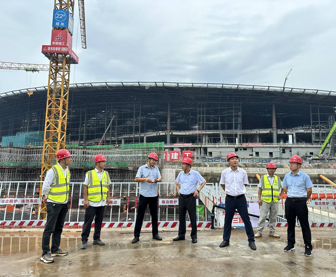 7月16日下午,建工股份黨委副書(shū)記、副董事長(cháng)、總經(jīng)理李有貴一行,赴合肥新橋機場(chǎng)T2航站樓及綜合交通中心兩個(gè)項目開(kāi)展調研。