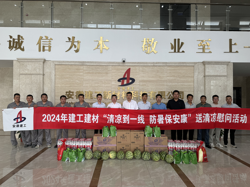 7月16日,建工建材黨委委員、副總經(jīng)理、工會(huì )主席邵佳一行赴蚌埠建材、嘉和建筑開(kāi)展“清涼到一線(xiàn) 防暑保安康”送清涼慰問(wèn)活動(dòng),為生產(chǎn)一線(xiàn)的職工們送去了夏季藥物、西瓜、清涼飲品等防暑降溫物品,并向堅守崗位的一線(xiàn)職工表示誠摯的問(wèn)候和感謝。