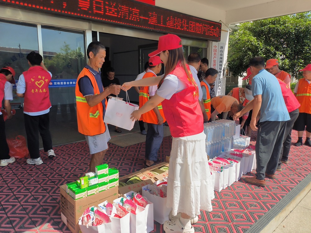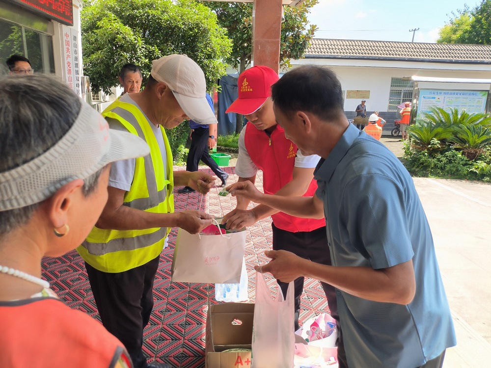 活動(dòng)現場(chǎng),項目團員青年們對堅守一線(xiàn)的環(huán)衛工人送上花露水、西瓜、礦泉水、防暑藥品及生活必需品,并囑咐他們要注意防暑降溫,保重身體。