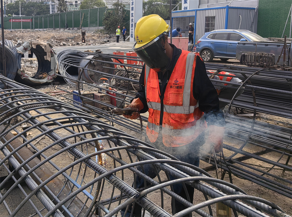 雖正值盛夏酷暑,祁門(mén)建投梅城大廈項目及低碳科創(chuàng )園項目的建設現場(chǎng)依然熱火朝天。頭戴黃色安全帽的鋼筋工人,戴著(zhù)面罩及厚厚的手套,即使經(jīng)受著(zhù)高溫天氣和焊接火星的雙重夾擊,仍沒(méi)有一絲懈怠,全神貫注地焊著(zhù)手中的鋼筋籠。熱浪中,工人們身上的衣服已是濕了又干、干了又濕,但手中的工作沒(méi)有絲毫的懈怠和疏忽,用頑強的毅力和不屈的精神對抗著(zhù)高溫的侵襲。